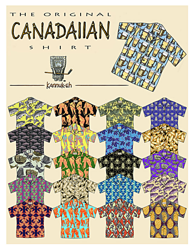 More than just an exquisitely designed festive garment, the Original Canadaiian Shirt an emblem, a flag, a statement. Wearing this shirt you are not only saying "I'm proud to be Canadian", you're also showing everyone you're oblivious to frostbite, hypothermia and pesky bugs.